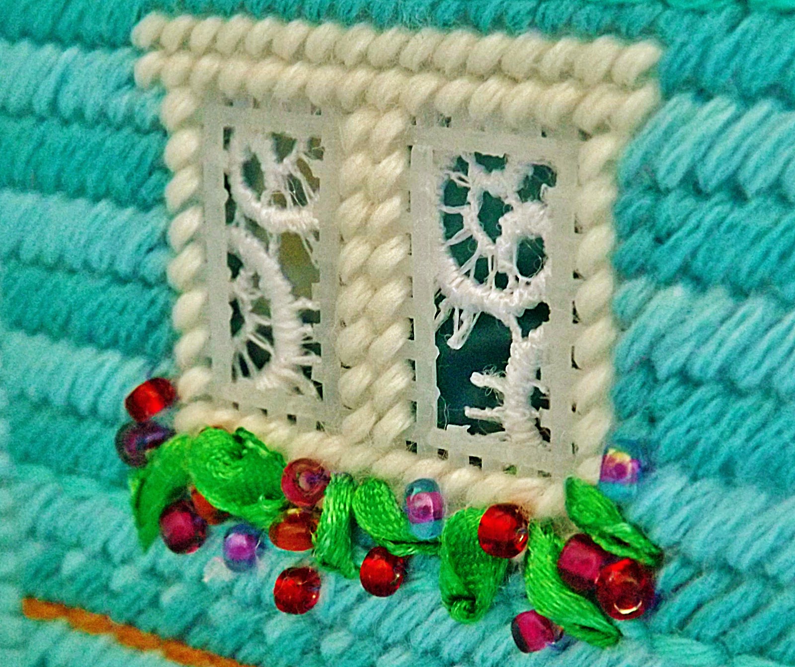 | Пластиковая канва, мулине шеpсть-акрил, кружево, ленты, бисер |